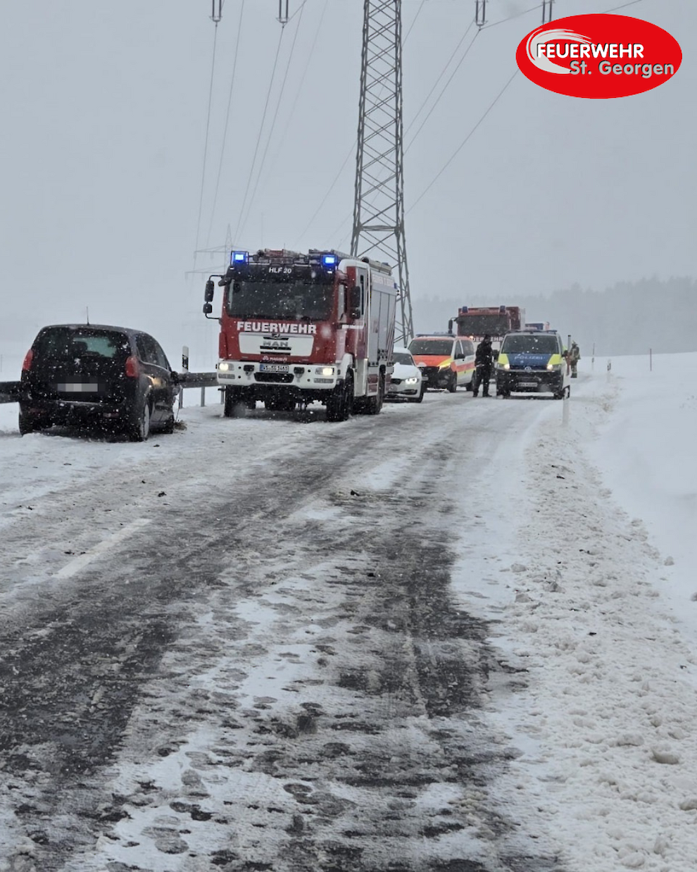 Alarmierung durch automatisches Notrufsystem (eCall). Im Unfallgeschehen waren zwei PKWs mit ingesamt sieben Insassen betroffen.